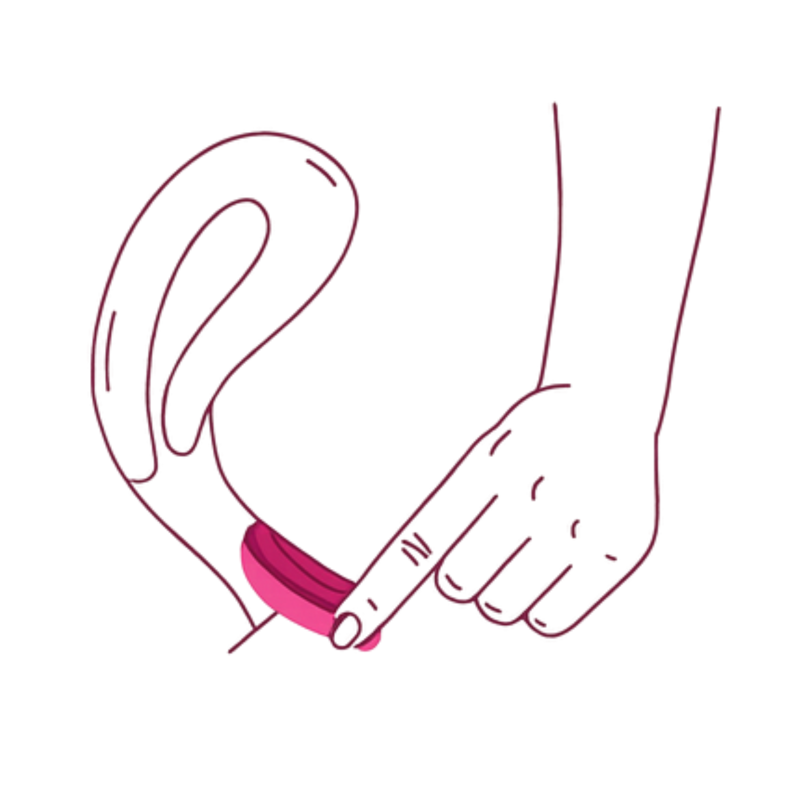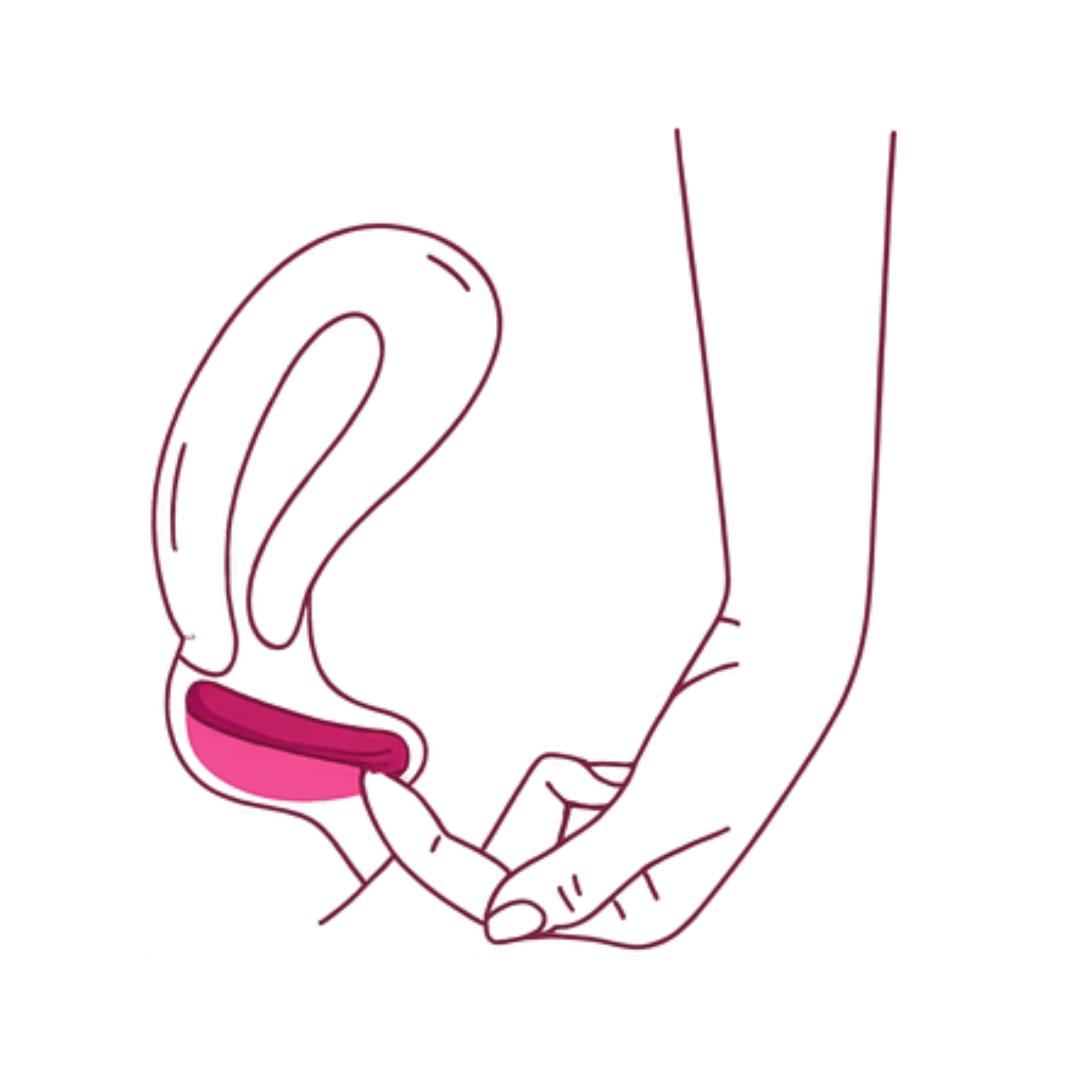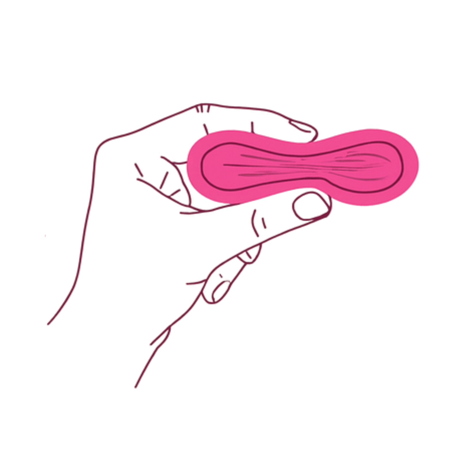 1. Gently fold the Femdisc and insert it at a 45° angle, similar to a tampon. Its unique design glides naturally into the correct position on its own, no twisting or readjusting needed.